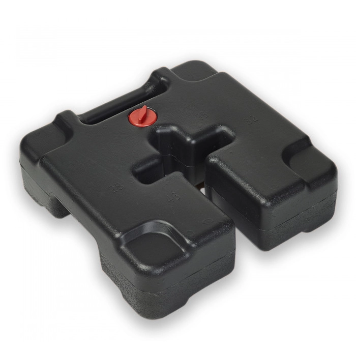 La base para carpa, es un producto diseñado para proporcionar una superficie sólida y estable para la instalación de carpas publicitarias en eventos al aire libre. Base rellenable con 10 litros de agua o 10kg de arena.
